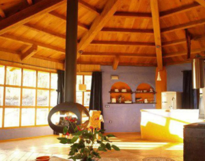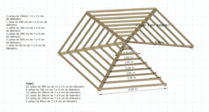 con vigas y techo podemos empezar a pensar qué tipos de paredes nos van a cobijar, si la cuenta no está mal podemos hacer 3 cristaleras + paredes sólidas, 2 cristaleras y 4 paredes, 1 cristalera y 5 paredes de paja,